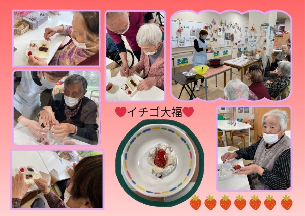 【せんぞく苑デイサービス】イチゴ大福を作りました