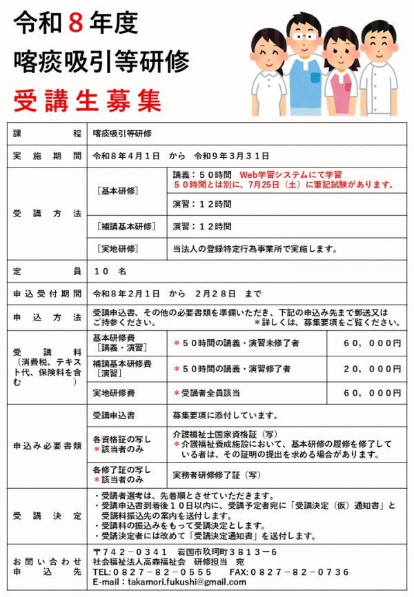 令和8年度 喀痰吸引等研修の開催のご案内