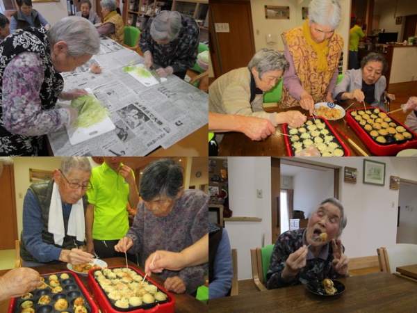 キャベツのみじん切りや生地つくりなど、それぞれ担当に分かれ、皆さん協力して、たこやきを焼きました!(^^)!