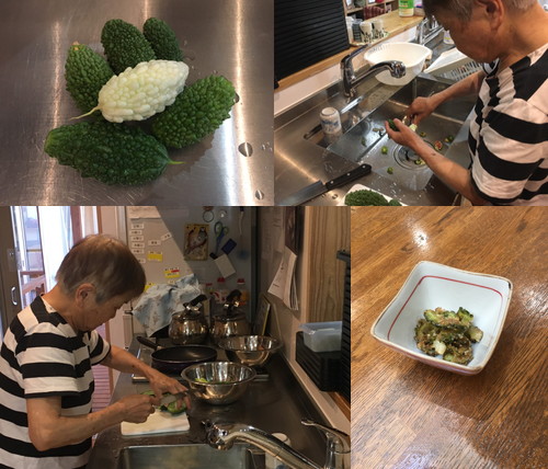 「白いゴーヤは珍しいね」「ゴーヤは好き嫌いあるからね~」とお話をしながら作りました。お昼の1品になりました。