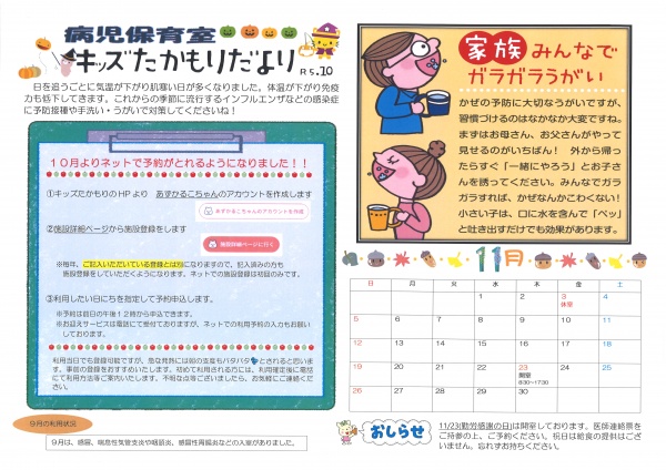 10月よりネット予約となり、今まで電話でご予約いただいていた保護者のかたには、ネットにて予約を取り直していただくなどご不便をおかけしましたが、施設登録を済ませていただけると、『空き状況がすぐわかる』『夜中でも予約できるから助かる』とありがたいお言葉をいただいております(*^^*)