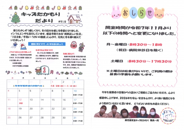 キッズたかもりだより 12月号掲載です!